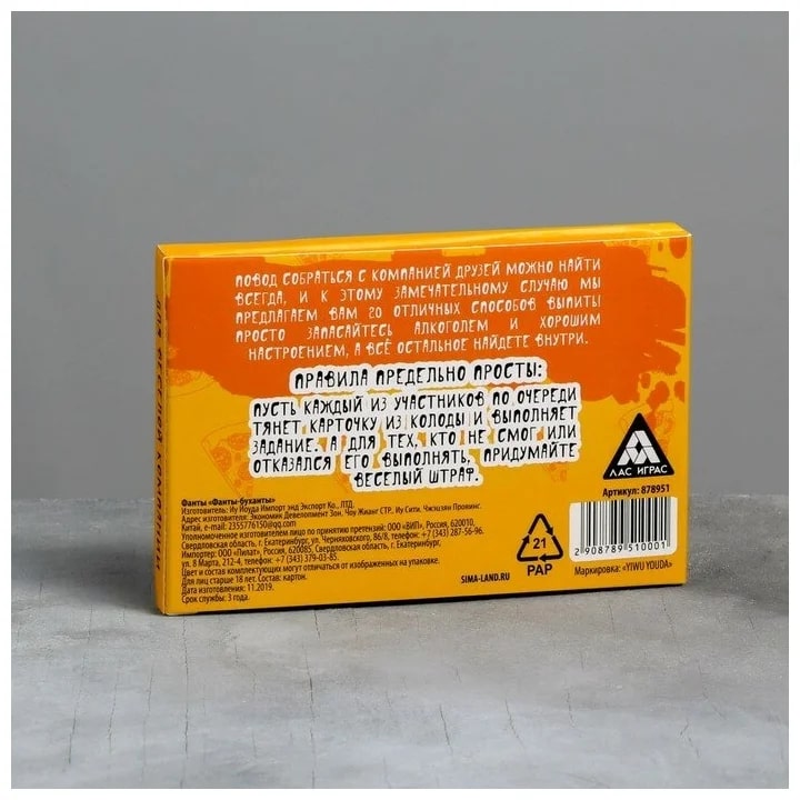 Купить игра для компании "фанты буханты" 20 карт от 100 руб. с доставкой до пункта выдачи в Дудинке. Интернет магазин ДекаМаркет. Оплата при получении.